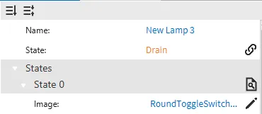 Create 3 Switch/Lamp objects. To the first one, bind the "ON" tag. To the second one, bind the "Drain" tag. To the third one, bind the "Status" tag.