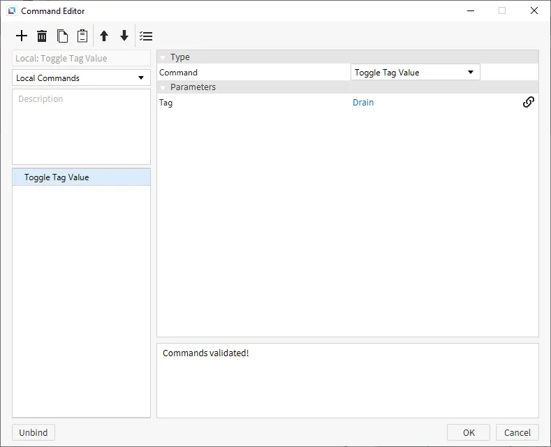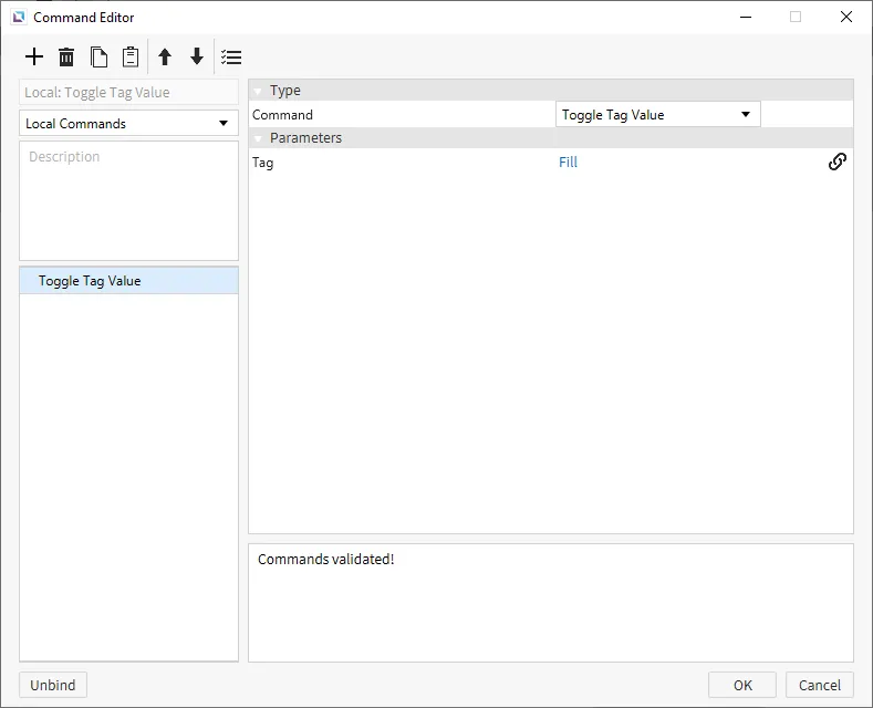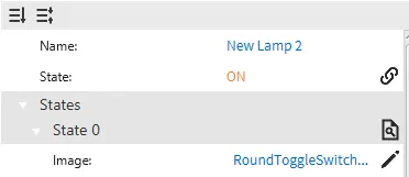For the other two Switch/Lamp objects, create an action on the first one to toggle the tag bound to the Switch/Lamp object. Create an action on the second one to toggle the tag bound to the Switch/Lamp object.