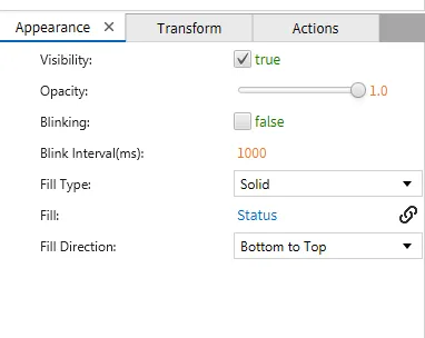 Create a fillable rectangle object on the screen. Bind the tag "Fill Percent" to the Value and bind the tag "Status" to the Fill parameter.