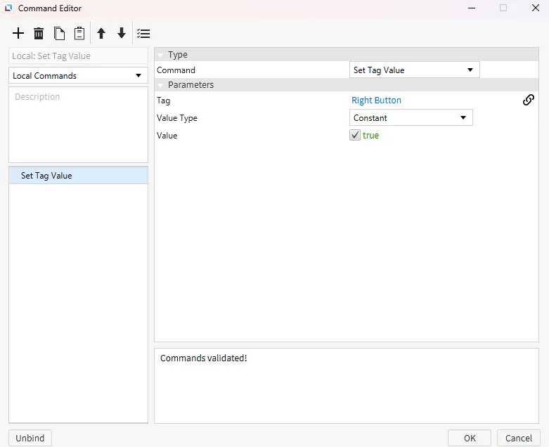 - For the right Vector Image, bind the "Right Button" tag to the command.