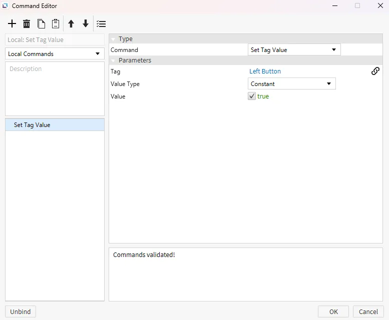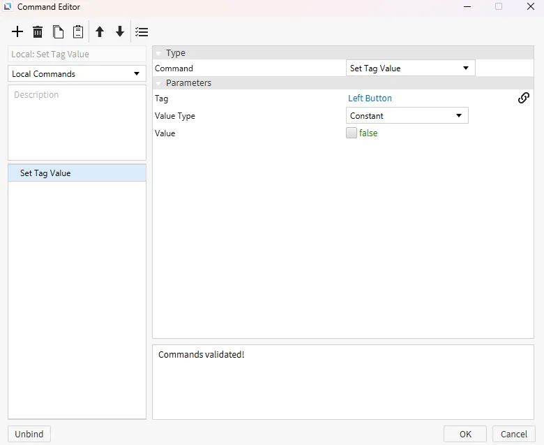 - For the left Vector Image, bind the "Left Button" tag to the command.