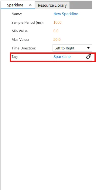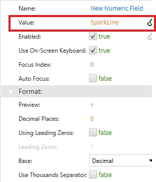 - Smart bind (drag-and-drop) the "SparkLine" to the sparkline table created. Bind the "SparkLine" tag to the Numeric Field as well to see the numbers adjusting.