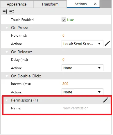 Objects with actions available can have permissions set onto the object. To select a permission, go to the Action tab on any object. Click on the Change Permissions icon to add permission to the object. Once the permission is added, any users without the correct permission will no longer be able to interact with the object.