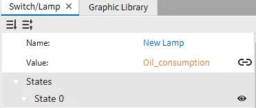- Create a lamp on the page. To create a Switch/Lamp object, go to Insert > Switch/Lamp or left-click the Insert Switch/Lamp icon in the Toolbar. Then, click and drag on the screen to place the lamp. Once the Switch/Lamp object is created, drag the Oil_consumption tag to the lamp. This will bind the Value field to the Tag Oil_consumption.
