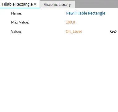 - Bind Oil_Level to the Fillable Rectangle. This can be achieved by clicking and holding the Oil_level tag and dragging it into the Fillable Rectangle. This will bind the current level property of the Fillable Rectangle to the Oil_level tag.