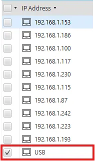 Locate the Xpanel to upload to. If the Xpanel is connected via Ethernet, the IP address will appear. Otherwise, USB is the connection option for the USB mini-B or USB-C.