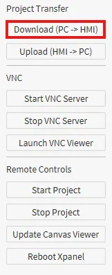 Select Download (PC -> HMI) to download a new project on to the Xpanel.