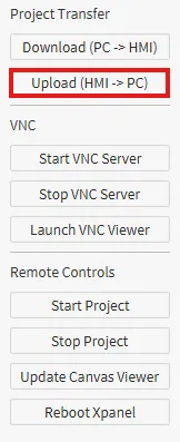 Select Upload (HMI -> PC) to upload the Xpanel project to the computer.