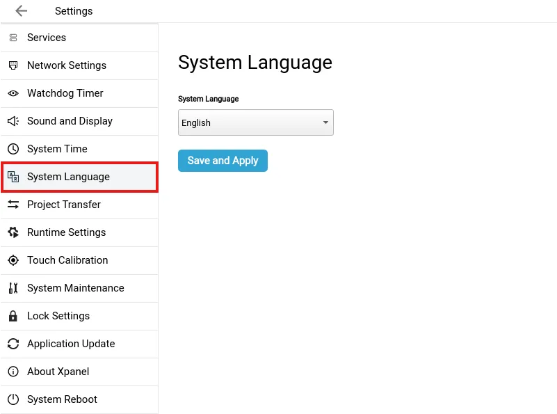If you want to change the default language used for the Xpanel, open the System Language menu.