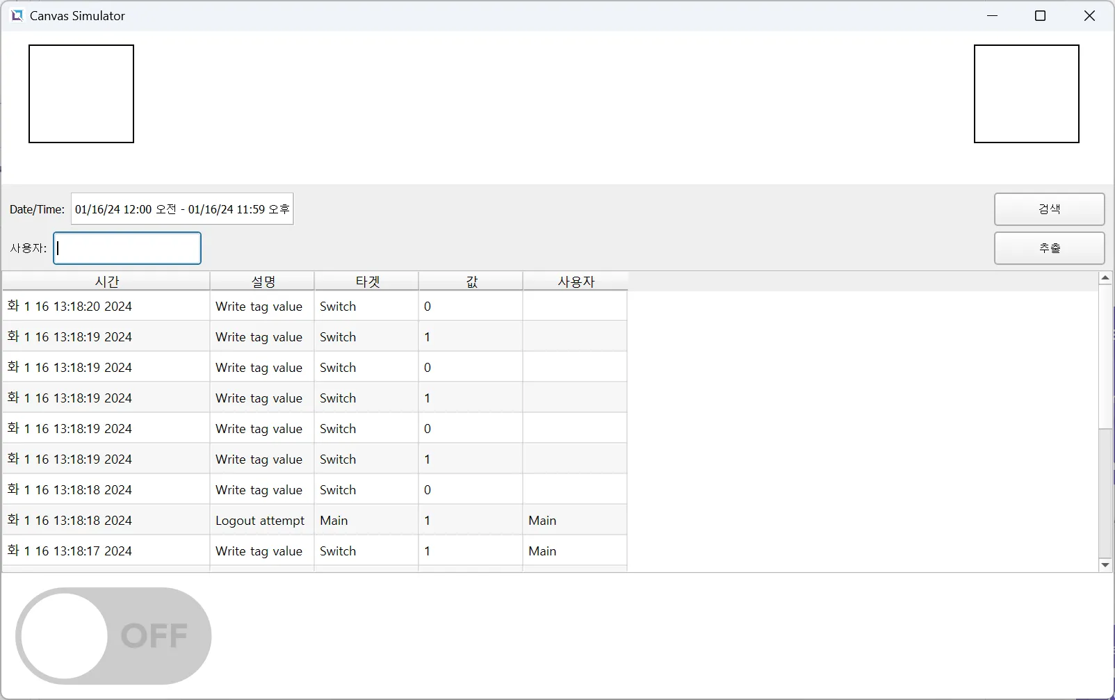 - [도구] > **[시뮬레이터 실행]**을 클릭하여 시뮬레이터를 실행합니다.