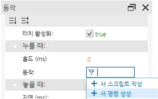 - 왼쪽 및 오른쪽 동작 버튼의 동작 옵션에서 누를 때: -> 동작: -> 새 명령 생성을 선택합니다.
