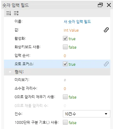 입력 필드 오브젝트 실행