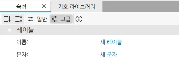 기본 속성 목록에서는 사용자가 오브젝트에 표시된 문자를 수정하여 태그 또는 기타 데이터 소스에 반영할 수 있습니다. 기본 속성 창은 아래와 같이 "레이블 오브젝트"를 표시합니다.