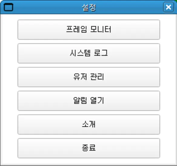 알림 열기를 클릭하면 런타임 실행 도중에 발생했던 모든 메시지가 표시됩니다. 태그 & 프레임 모니터 기능은 런타임에서 실행중인 프로젝트와 관련된 프레임 모니터 및 태그 모니터를 실행시킵니다. 시스템 로그는 런타임 실행 중 발생한 시스템 상의 이벤트가 모두 기록되어 나타납니다. 소개 버튼을 클릭하면 현재 실행중인 런타임 어플리케이션의 버전 정보와 기타 라이선스 관련 내용이 표시됩니다. User Management를 클릭하면 로그인 창을 포함해 런타임에서 설정할 수 있는 보안 관련 설정 화면이 표시됩니다.