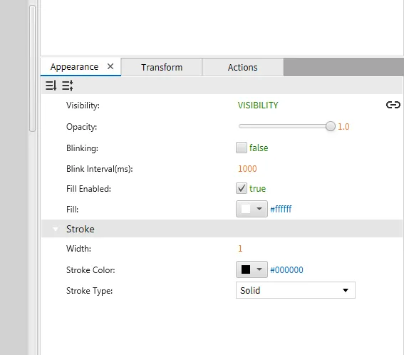 - Now, change the Visibility to 0 (false). This should hide the ellipse and will indicate that the tag is bound to the visibility property.
