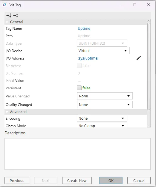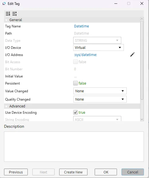 - Now try to change the DateTime tag to any number. Due to it being read directly from the system, no manual value changes can be made.