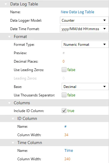 Section titled “Data Log Table Configuration”-