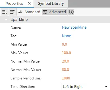 Section titled “Basic Properties”The Basic Properties section allows users to set the object's Name, Min Value, Max Value, and Sampling Period. It also allows users to specify the Normal Min Value, Normal Max Value, and Normal Color.