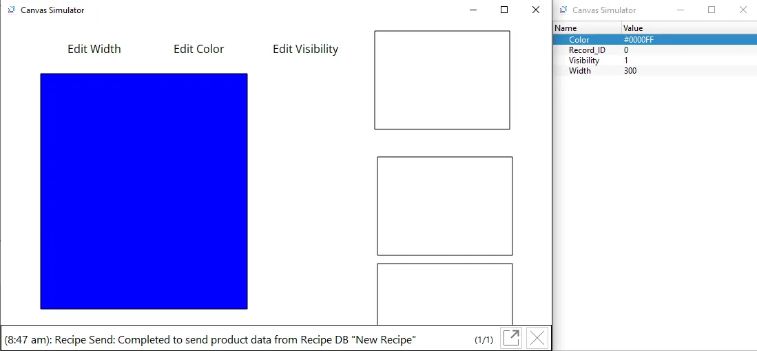 By clicking on the middle rectangle, the current tag values are recorded and saved within the Recipe at Record_ID 1.