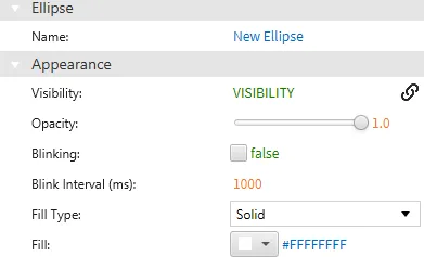Next, select the ellipse. Drag-and-drop the VISIBILITY tag onto the visibility property under Appearance. Or, hover over the visibility property and select the chain link icon. Bind the VISIBILITY tag manually.