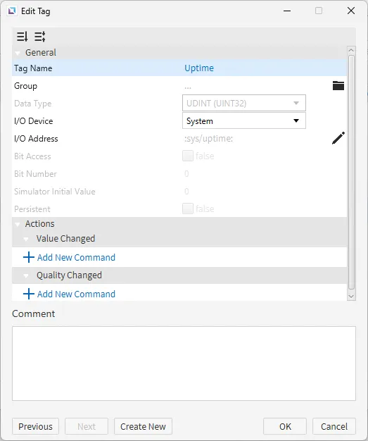 - Attempt the above step with the Uptime tag, and similar to the Datetime tag, due to it being read directly from the system, no manual value changes can be made.
