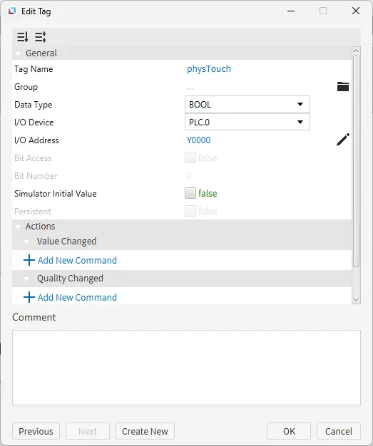 - I/O Device: PLC.0 (name of I/O device created with the I/O Device Editor)