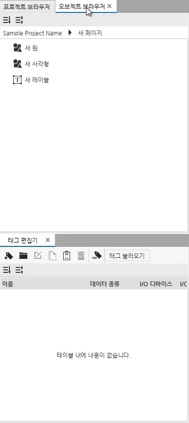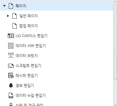 섹션 제목: “프로젝트 브라우저”보기 > 프로젝트 브라우저를 클릭하고 체크박스를 선택하여 프로젝트 브라우저를 활성화합니다. 프로젝트 브라우저는 모든 일반 페이지와 팝업 페이지, 그리고 다양한 편집기 메뉴로 가는 빠른 바로가기를 표시하는 창입니다.