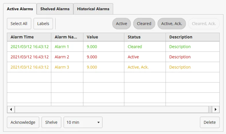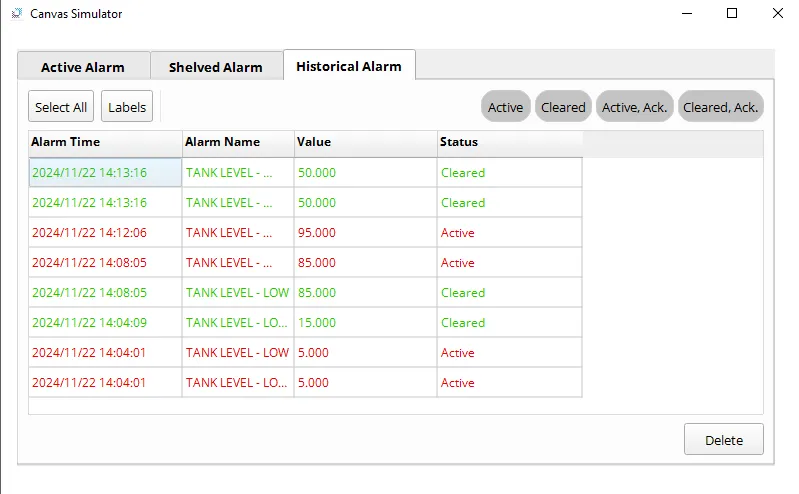 - Navigate to the Historical Alarm tab to view the archived alarm events.