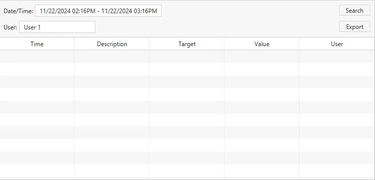 This page will show the time, description, target, value, and user who made the change when a user action causes a change in the program.