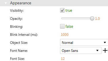 Section titled “Appearance”The Appearance section can alter visible characteristics, font type and size, and the object size.