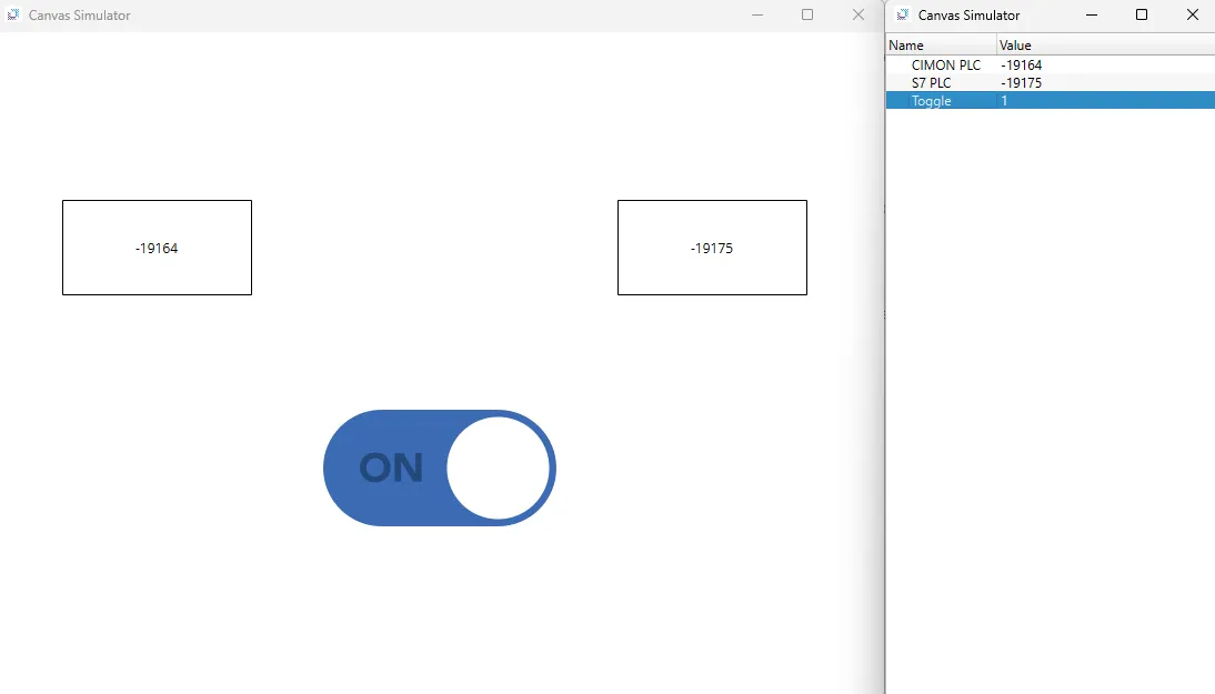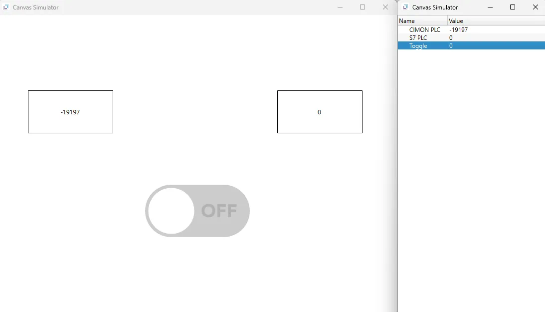 - The CIMON PLC will continue updating every second. However, the S7 PLC will not update until the toggle button is toggled off and on again.