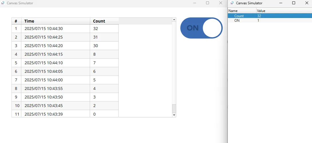 The Count tag will update every 5 seconds when the toggle button turns on.