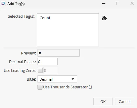 Section titled “Tag Configuration”- Create the following tags: