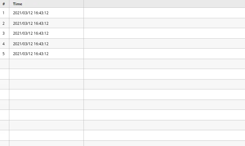 Section titled “Historical”While the program is running, the Data Log Table will continue to record data. This allows for a historical viewing of old data. Users can scroll through the history of the Data Log Table. Up to 5,000 rows will be stored.
