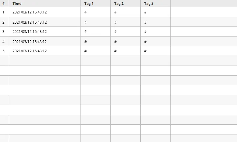 Each tag that is logged will create a new column. The Time column will always be available as a default column.
