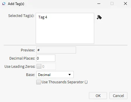 The data logging format for each tag can be specified when adding the tag to the model.