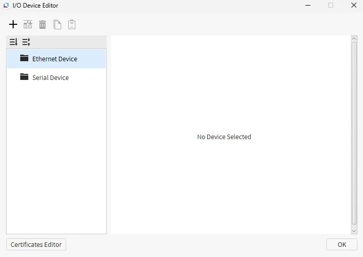 Section titled “Device Communication Designer Functionalities”I/O Device Editor