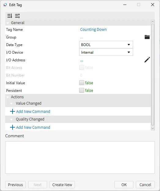 tag.write("Counting Down", false); tag.write("Momentary Visibility", false);}- This code will be used for the objects in the next section. If either the left or right button is pressed, a 10-second timer counts down and makes another button appear.