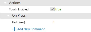 - For the left and right action buttons, go to the Actions property, On Press, and select Add New Command.