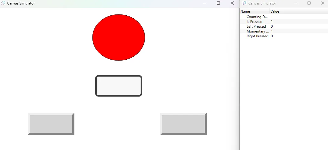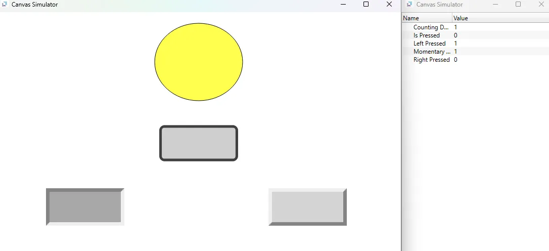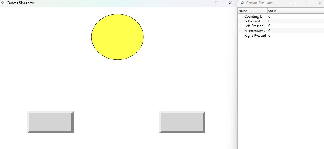 Section titled “Project Configuration”- Draw 4 objects on the screen: an ellipse, one momentary button, and two action buttons.