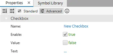 Section titled “Basic Properties”The Basic Properties section allows users to change the name, enable or disable the checkbox, set its value and text. When the checkbox is enabled, users can change the value of the associated tag.