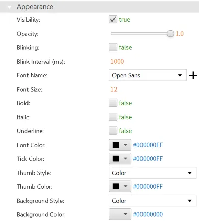 Section titled “Appearance”The Appearance section provides controls for customizing the visual style and look of the dial object.