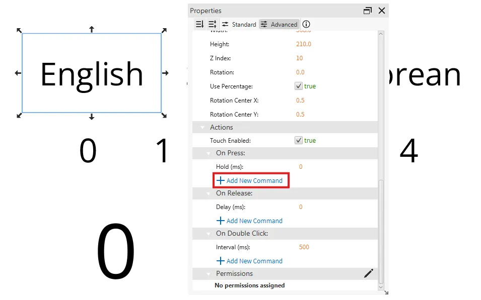 Section titled “Project Configuration 2”- Select one of the text displays and go to the Actions property and select On Press.