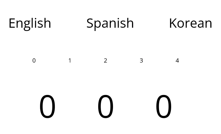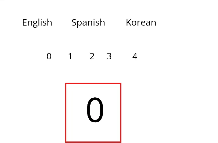 The end result of this project is to have a translation from English, to Spanish, to Korean when those languages are pressed/clicked. Each language is also tied to its own number.