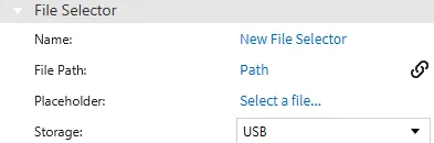 - Drag-and-drop the Path tag onto the file path object. This will change the file path property to the Path tag. Change the storage type to USB.