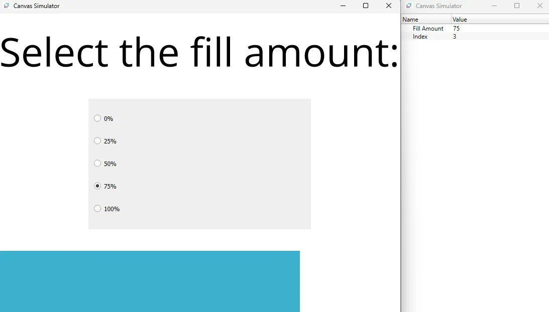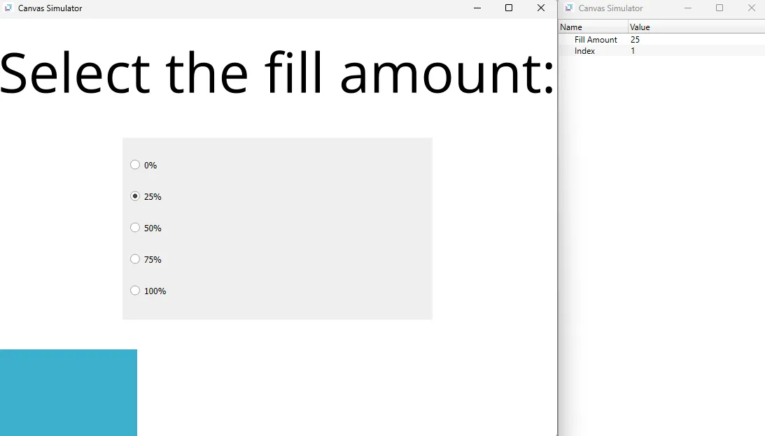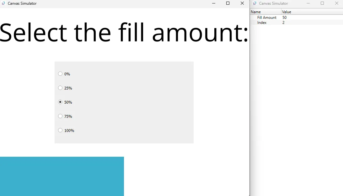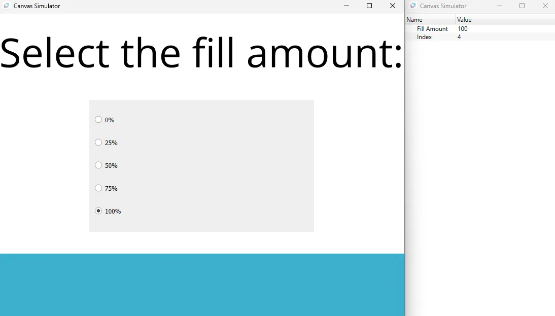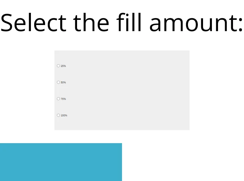 In the radio button group, select a fill amount. The fillable rectangle will fill based on the choice selected.