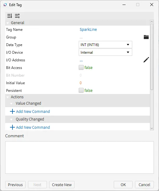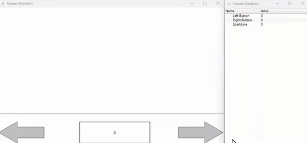 while (1) { if (tag.read("Left Button")){ tag.write("SparkLine", tag.read("SparkLine") - 1); } thread.msleep(50)}- This code will be used for the objects in the next section. If either the left or right button are pressed and held down it will cause the Sparkline to move either up or down depending on which arrow is pressed.