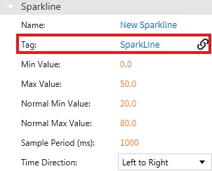 - Smart bind (drag-and-drop) the SparkLine tag to the sparkline graph and the numeric field.