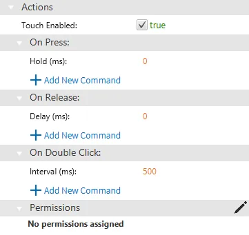 Section titled “Actions”The Actions tab lets users define what happens when interacting with the sparkline. Users can specify actions for events like On Press, On Release, or On Double Click. These actions could trigger a script or another defined behavior within the application.