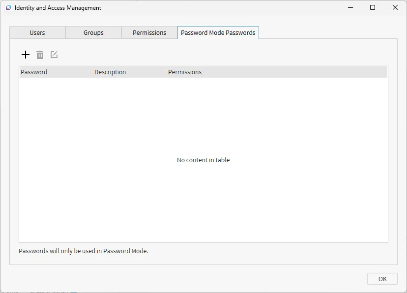 Section titled “Identity and Access Management Designer Functionalities”The Identity and Access Management window can be opened by clicking Tools > Identity and Access Management.